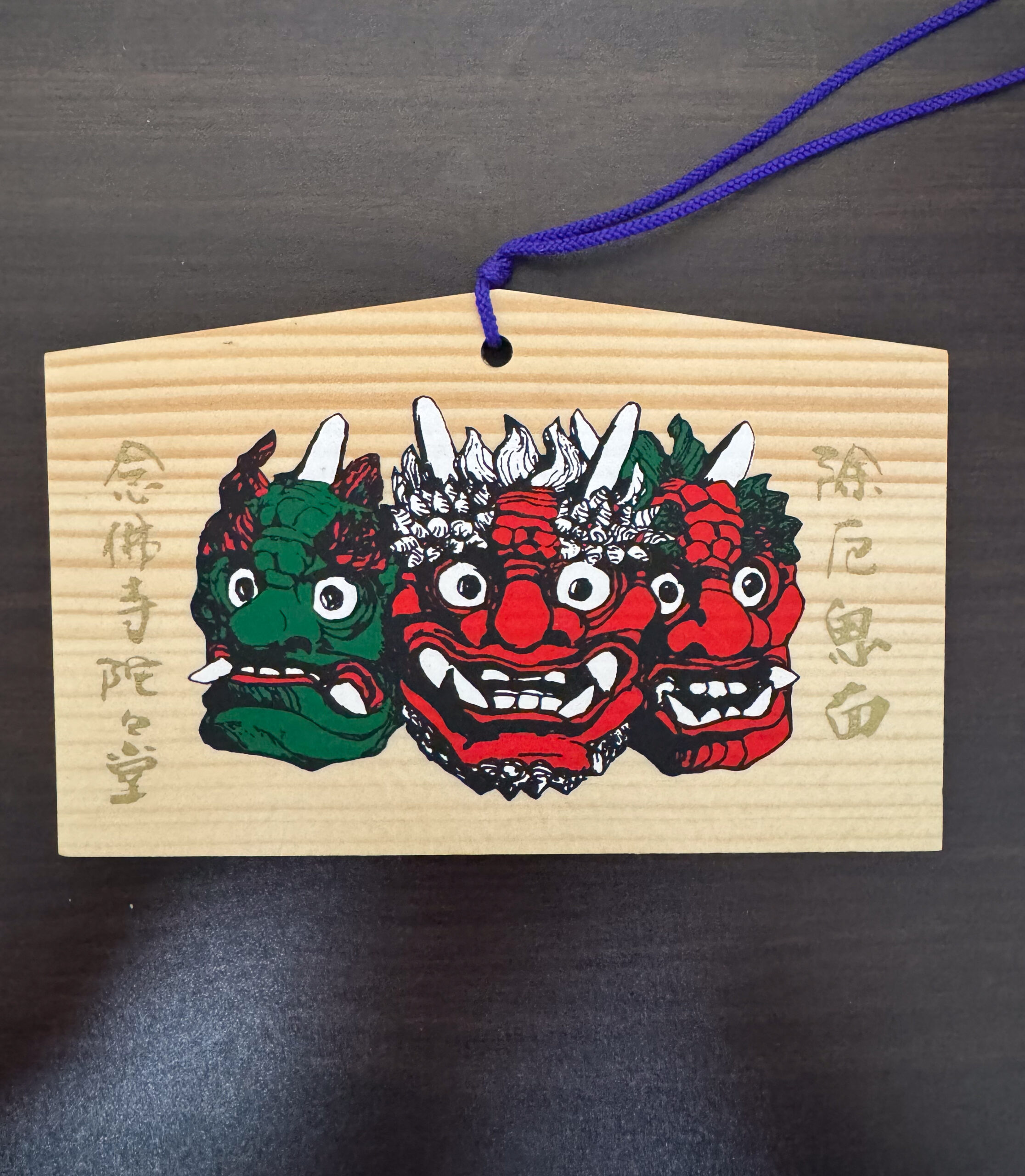当時の鬼面はすでに失われ、いまに遺る鬼面は室町時代の作ながら、エキゾチックな顔つきと飄逸な表情が、当初の鬼面を偲ばせてくれます。