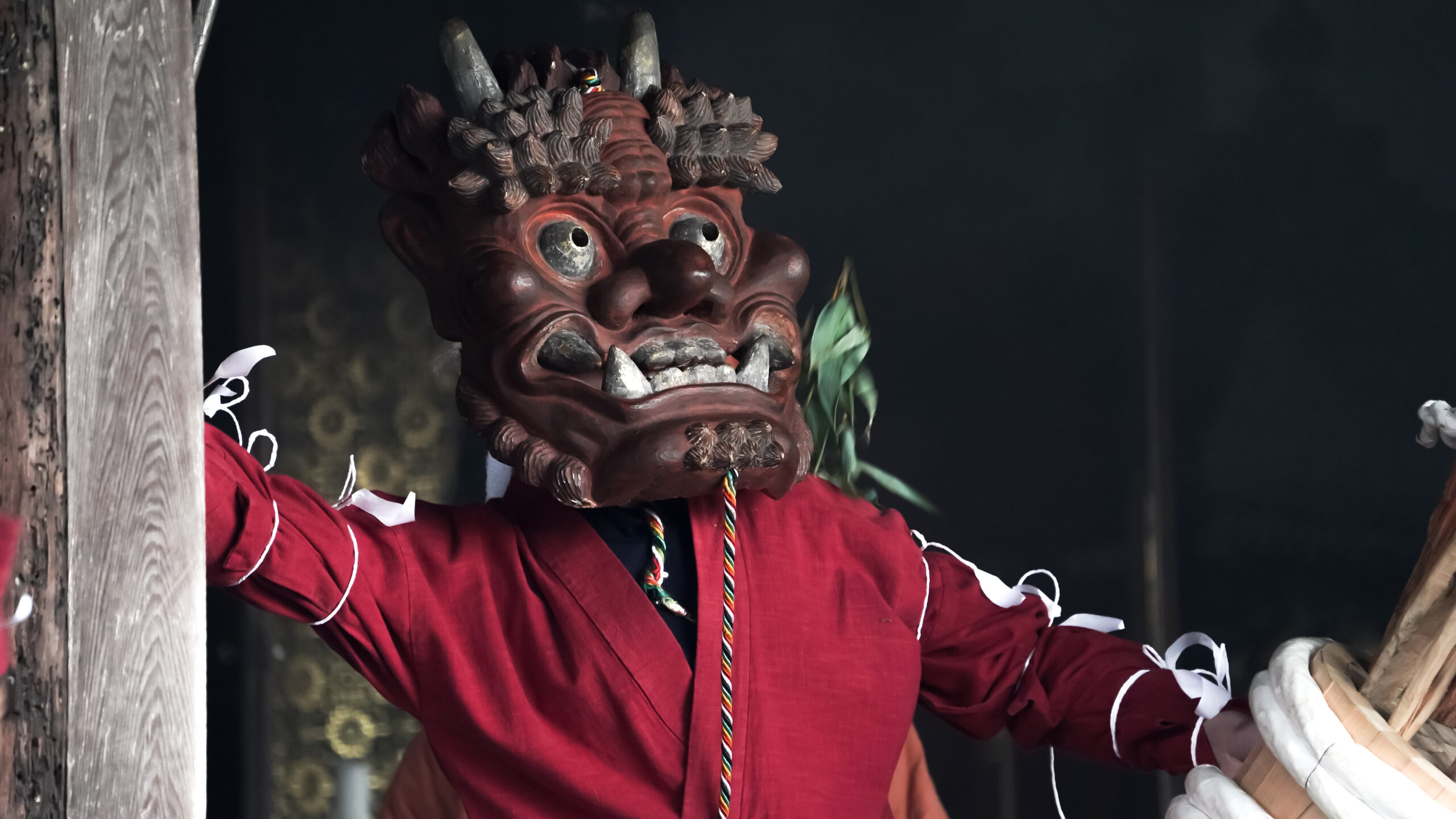 鬼面には文明18年(1486)の墨書銘があり、500年以上続く伝承行事は地域の人たちによって大切に守り伝えられ、昭和55年(1980)3月に県指定無形民俗文化財、平成7年(1995)12月に国指定重要無形民俗文化財に指定されました。